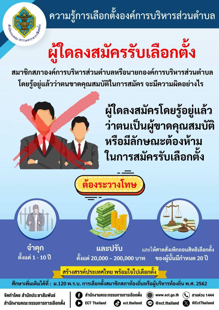 คุณสมบัติลักษณะต้องห้ามของผู้สมัครนายกองค์การบริหารส่วนตำบล/สมาชิกสภาองค์การบริหารส่วนตำบล |